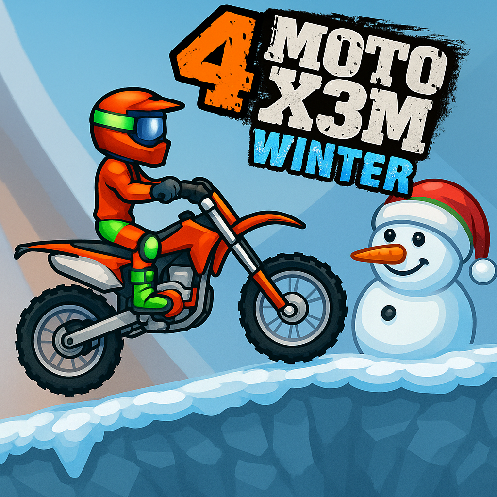 In Moto X3M 4 Winter, use the arrow keys to accelerate, brake, and tilt your bike to maintain balance as you race through ramps, loops, and icy obstacles that test your reflexes and timing. Perform flips at the right moment to shave 0.5 seconds off your total time, earning more stars, and quickly restart from checkpoints if you crash. With 25 winter-themed tracks filled with increasingly tricky obstacles, ramps, and layouts, every level challenges your precision while offering replayable fun for racing and stunt enthusiasts alike.